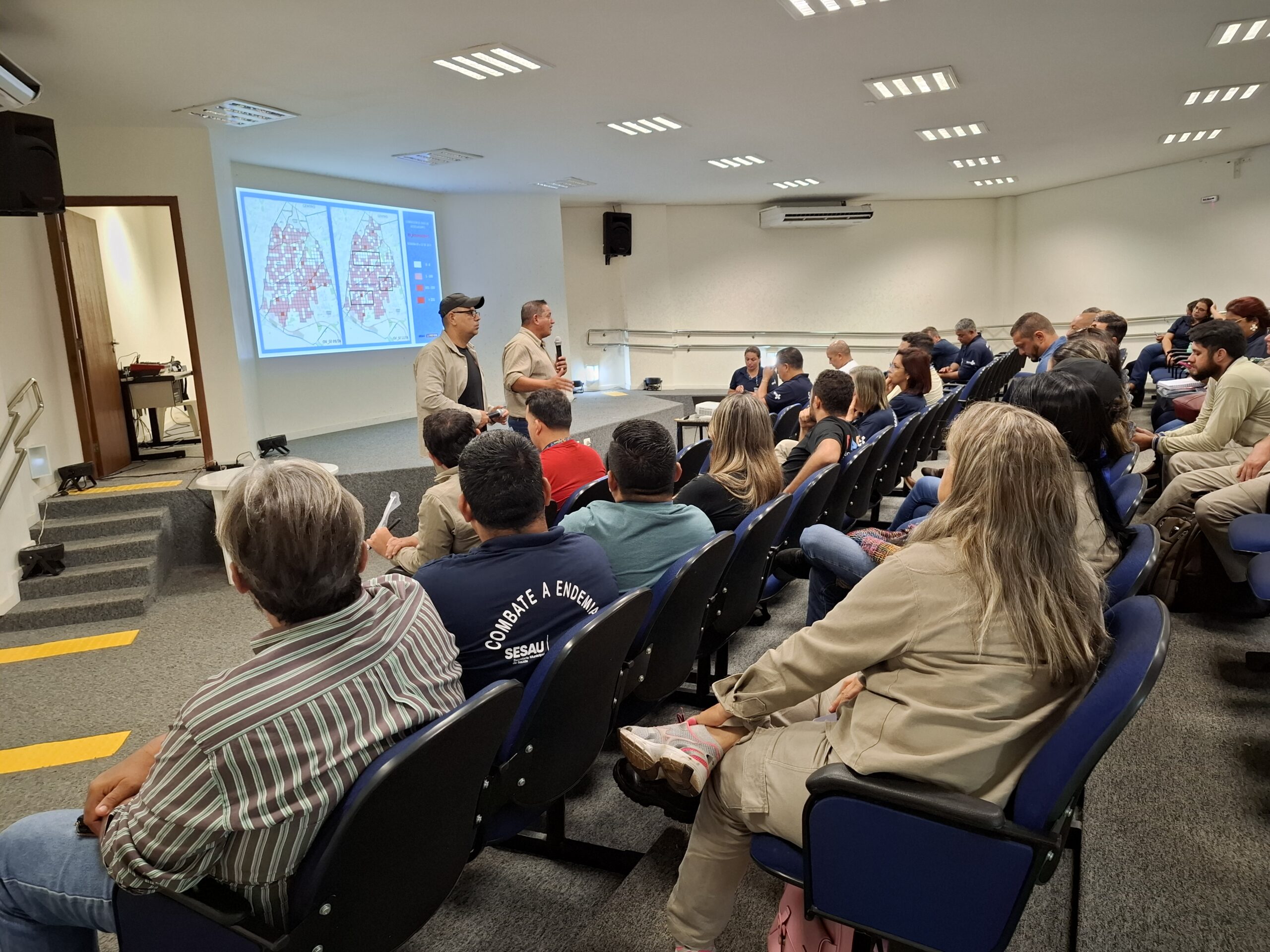 A reunião contou com a presença dos supervisores gerais e de área da coordenadoria de controle de endemias vetoriais (CCEV), que serão as figuras centrais para a disseminação das informações entre as equipes.