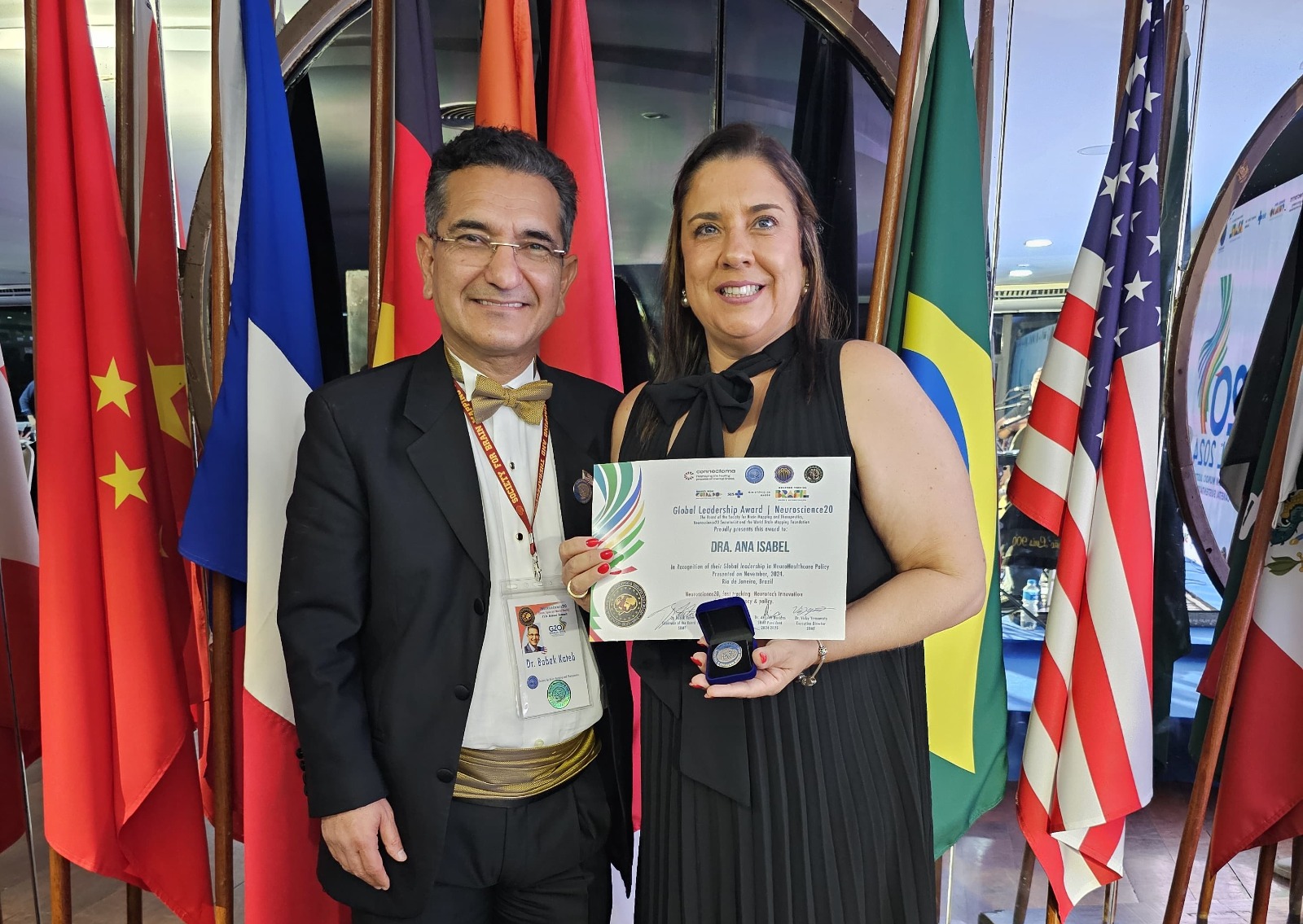 A SBMT Brasil foi representada por Dra Ana Isabel Cunha – SBMT Director of International Membership Services (Brazil) | Sociedade de Mapeamento Cerebral e Terapêutica (SBMT Brasil) e CEO da Hangar 7 Eventos, que assumiu o protagonismo institucional em nome do Dr. Babak Kateb e do Dr. Marcos Wagner, presidente da SBMT Brasil. Com sólida experiência em eventos estratégicos da Aeronáutica Brasileira e no G20|N20 Brasil, Ana destacou a importância da colaboração científica global e da disseminação de conhecimento.