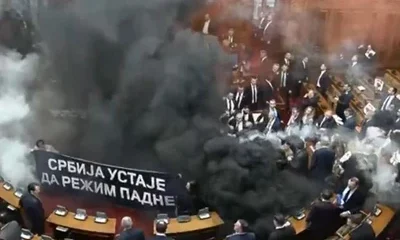 Oposição classificou a sessão como ilegal e pedia confirmação da renúncia do primeiro-ministro do país, Milos Vucevic O uso de bombas de fumaça e sinalizadores deixou...