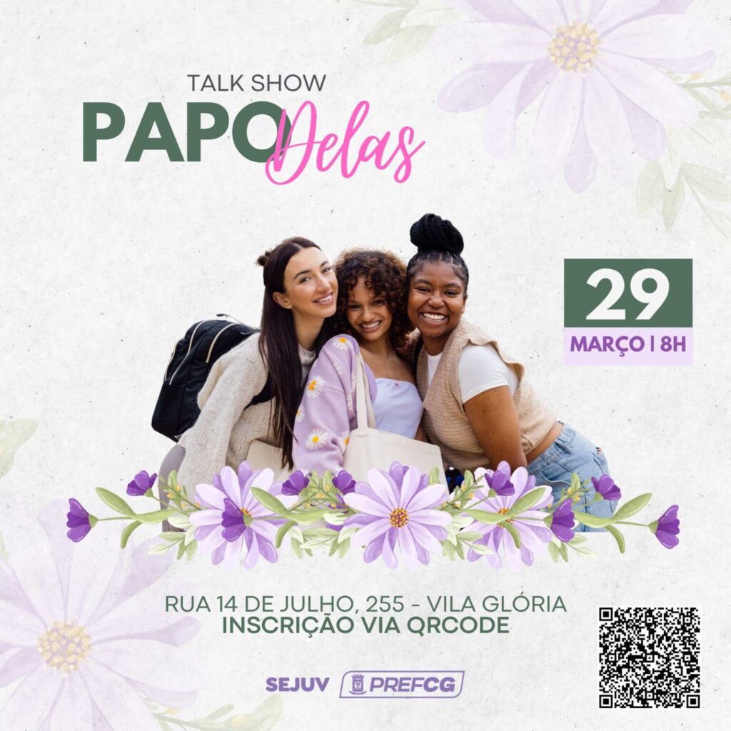 No dia 29 de março, a Secretaria Executiva da Juventude realiza o Talk Show Papo Delas, evento voltado para o empoderamento feminino, em homenagem ao mês da mulher. O encontro promete ser uma manhã de troca de experiências e aprendizados, com foco no desenvolvimento pessoal e profissional das participantes e será realizado na Rua 14 de Julho, 255 – Vila Glória.