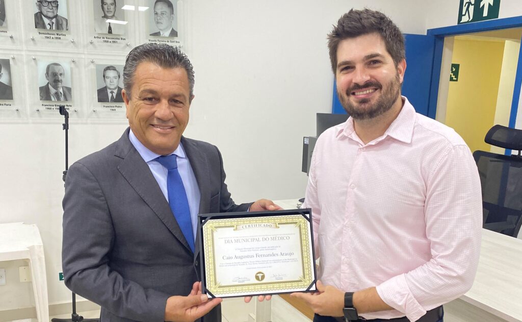 Em alusão ao Dia do Médico, o vereador e 1º secretário da Casa de Leis, Delei Pinheiro (PSD), entregou a honraria ao Dr. Caio Augustus Fernandes Araújo, médico ortopedista pelo excelente trabalho realizado em seus pacientes.