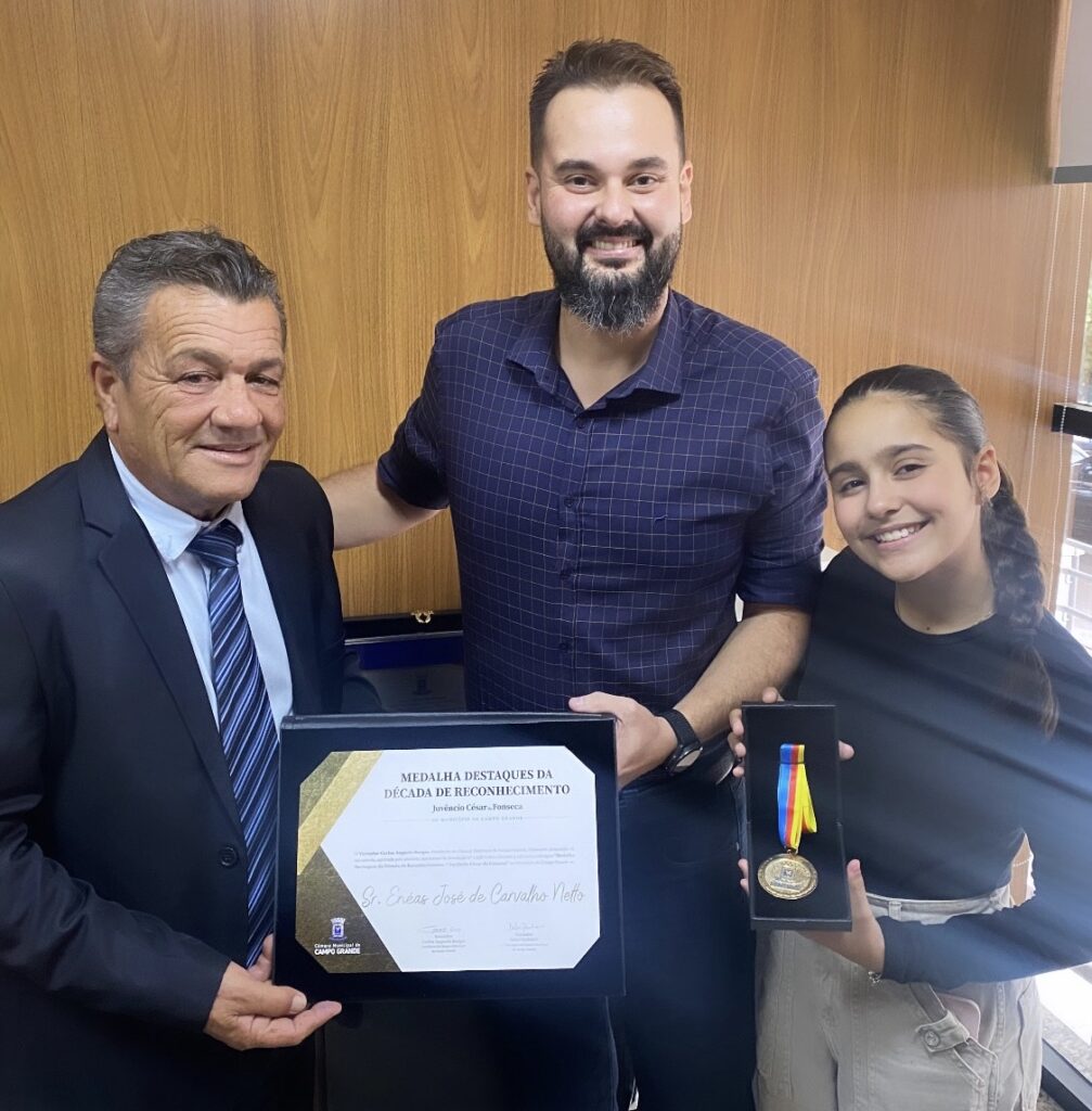 Nesta quinta-feira (11) o vereador 1º secretário da Casa de Leis Delei Pinheiro (PP) entregou a Medalha de reconhecimento ao trabalho prestado na capital para Enéas José de Carvalho Netto em “Destaques da Década de Reconhecimento – Juvêncio César da Fonseca” no município de Campo Grande – MS. Nos termos da resolução n.1358/2022 e decreto 3.126/2024.