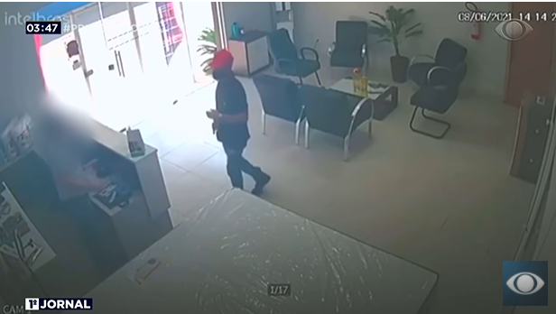 Nas imagens divulgadas pela Rede Bandeirante, os criminosos aparecem adentrando o estabelecimento e rendendo uma funcionária que estava na recepção.
