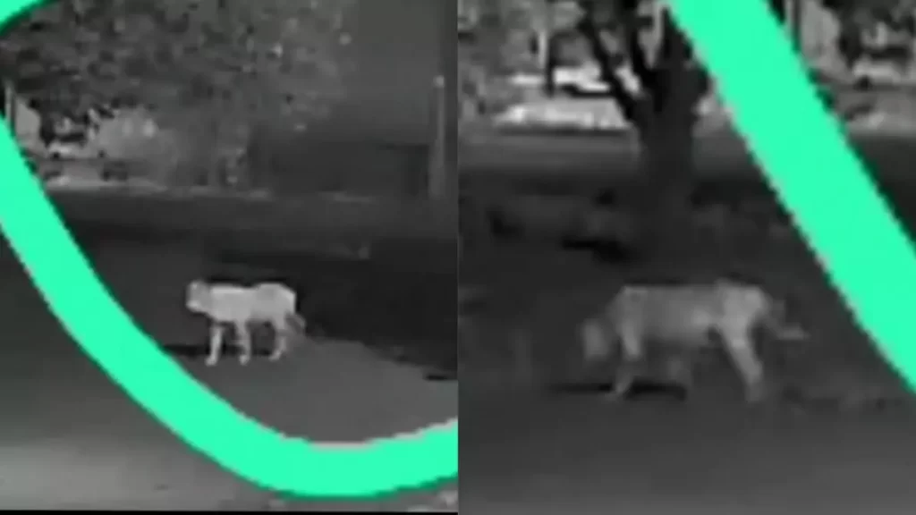 Na procura do bicho, uma moradora flagrou o felino ao olhar os arquivos das câmeras de segurança de sua residência. Aos fundos do vídeo também é possível ver a movimentação de alguns outros cães que estariam rondando o suposto felino.